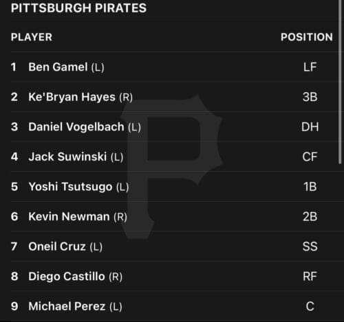 UPDATE (1:29 p.m.) The Pirates lineup against Brandon Woodruff.